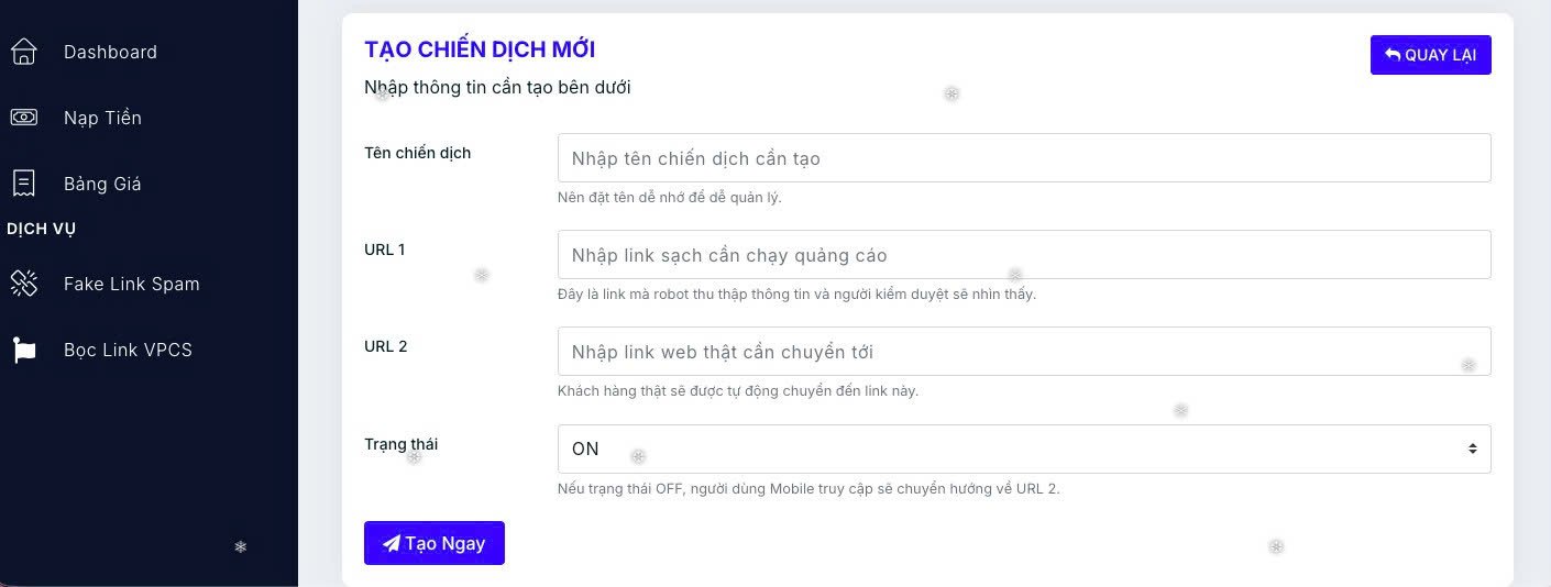 Bước 2: Tạo chiến dịch bọc link (quan trọng nhất)
